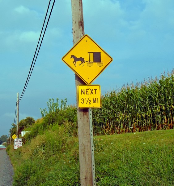 - Encontrada em estradas dos Estados Unidos, a placa da foto informa que o veículo está perto de um vilarejo Amish. Isso significa que é preciso reduzir a velocidade e dividir o espaço das vias com carruagens e cavalos | Foto: Nicholas_T via VisualHunt.com / CC BY