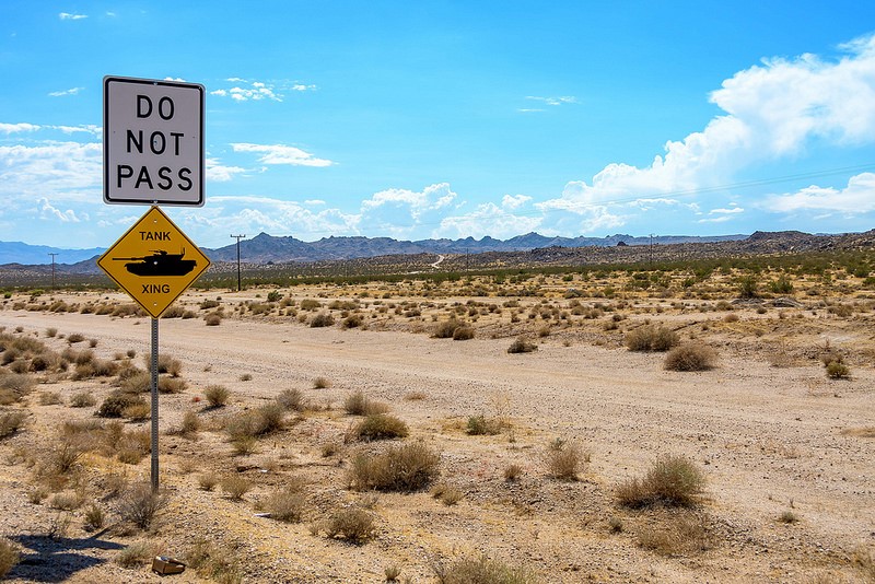 - Nos Estados Unidos, o motorista pode dar de cara com um tanque de guerra. A placa indica que os veículos não devem ultrapassar a via | Foto: KN6KS via VisualHunt / CC BY-NC