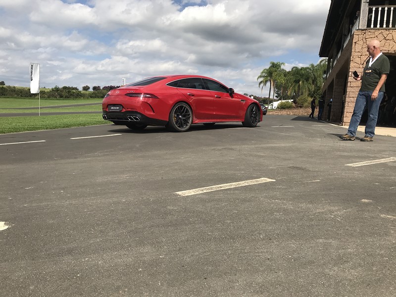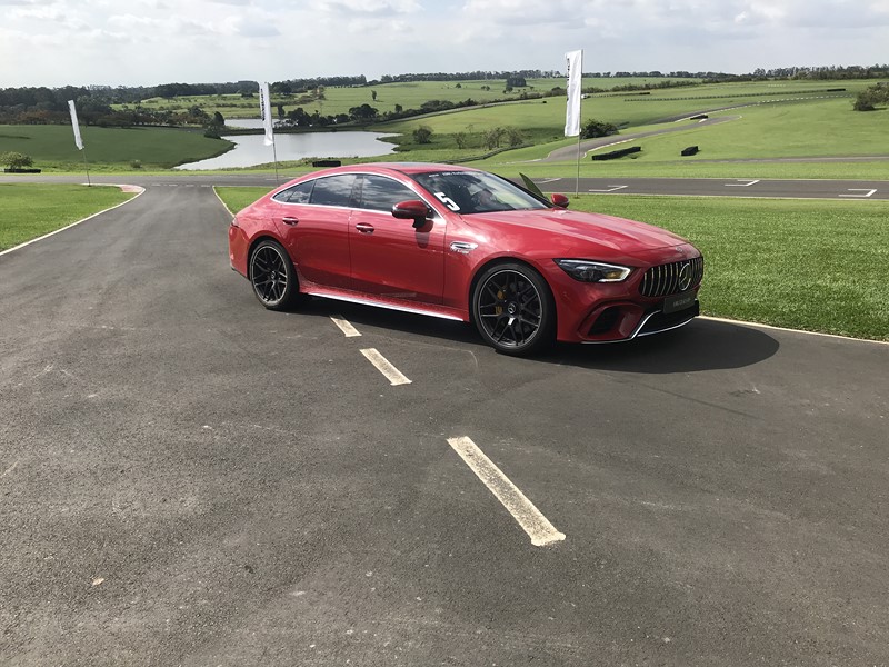 Porém, nenhum carro foi tão brutal quanto o AMG GT 63 S. Versão de quatro portas do AMG GT (o Safety Car da Fórmula 1), o supercarro tem um V8 4,0l que urra como o deus do trovão. Cada troca de marcha resulta em um tranco no corpo dos ocupantes. Como a pista da Capuava é curva, o melhor é não se empolgar no acelerador. Grandes potências — ele tem 639 cv — exigem grandes responsabilidades, então o mais prudente foi rodar com o grandalhão na ponta dos dedos das mãos e dos pés.