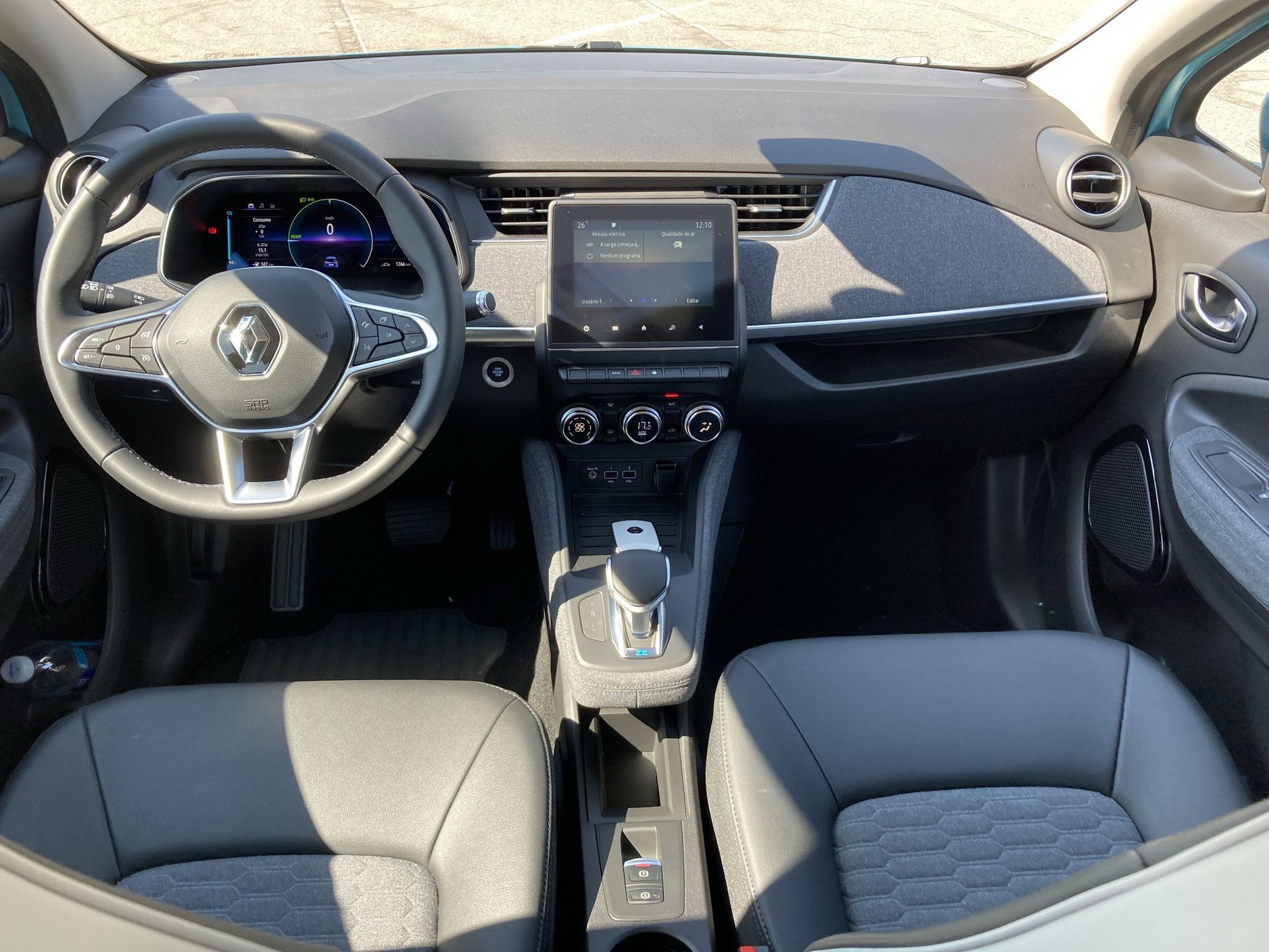 Peguei a rodovia Anchieta rumo ao litoral por volta das 12h30. Como precisava devolver o carro até às 16h, a ideia era ir e voltar sem paradas – até porque estamos no meio de uma pandemia e não vale a pena dar bobeira. Para descer, tudo tranquilo, exceto pelo fato de eu estar no menor veículo no meio de um mar de caminhões. Nesse trecho foi possível conhecer um dos bons recursos do Zoe: o que regenera a energia das frenagens para recarregar a bateria. O painel de instrumentos digital informava 86% de carga no topo da serra. Com o carro no modo B durante boa parte da descida, ele terminou o trajeto com 89% de carga. Isso nenhum carro somente a combustão consegue fazer, já que é impossível aumentar a quantidade de litros no tanque nessas situações.