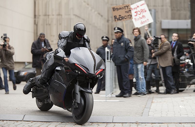 - Uma futurista moto preta, feita a partir da Kawasaki Z1000, foi a escolhida pelo policial-ciborgue Alex Murphy (Joel Kinnaman) para combater o crime no filme “RoboCop” (2014), dirigido pelo brasileiro José Padrilha | Foto: Reprodução