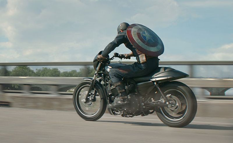 - O herói Capitão América, interpretado por Chris Evans, usa uma Harley-Davidson Street 750 nas cenas do filme “Capitão América 2: O Soldado Invernal” (2014) | Foto: Reproduçãon