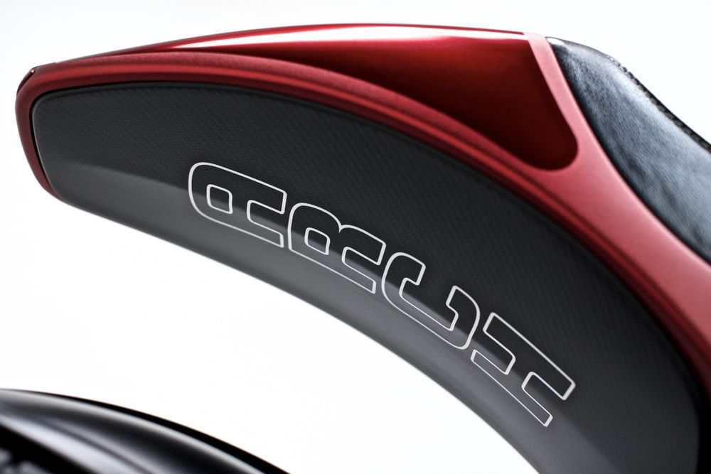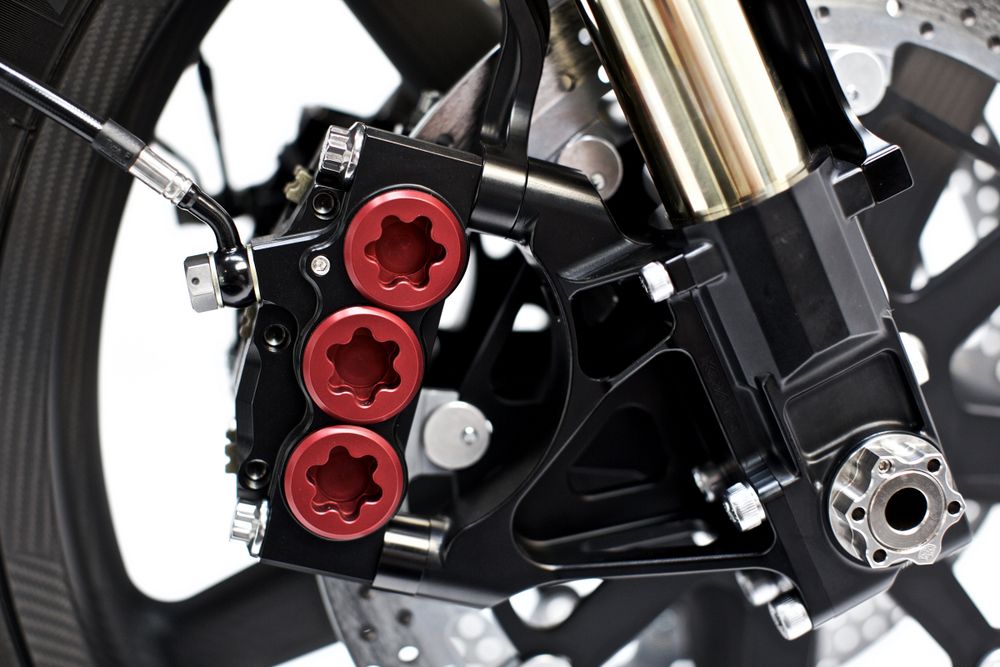 Calçando pneus Michelin de 19 polegadas na frente e 18 polegadas na traseira, o veículo conta com rodas feitas em fibra de carbono. Já os faróis e as lanternas são em LED.