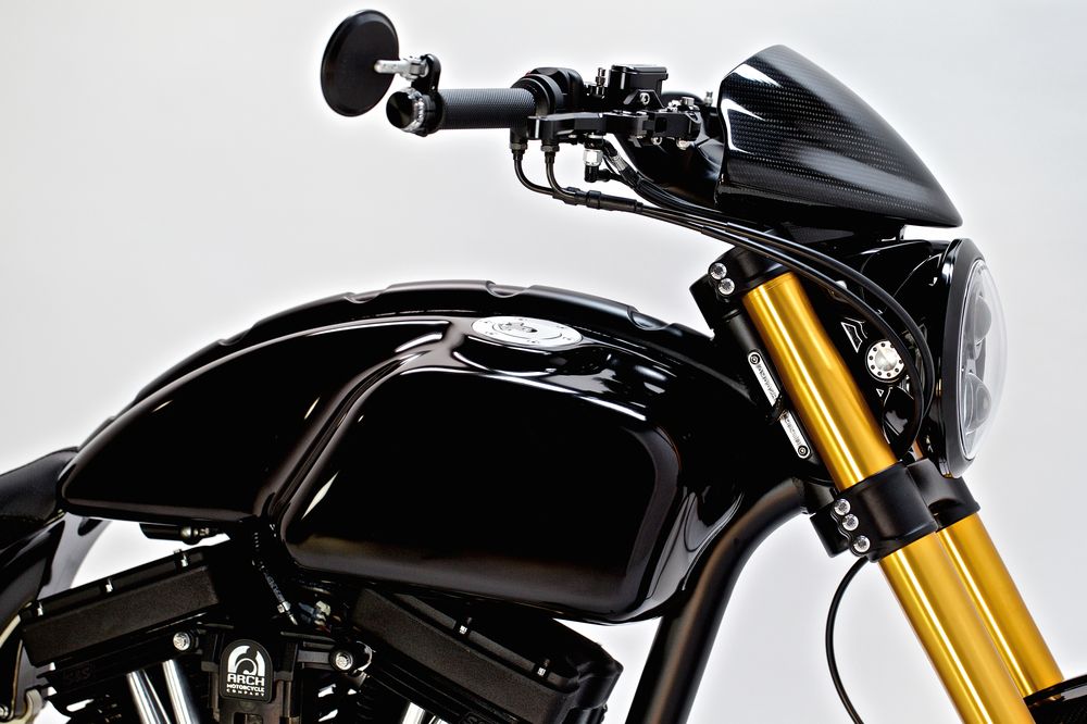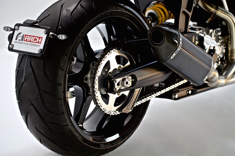 Na nova empreitada, a dupla preparou uma moto potente, com motor de dois cilindros em V e 2302 cc, aliada a uma transmissão de seis marchas. Segundo o site da Arch, tanto o propulsor como o câmbio são fabricadas pela própria empresa.