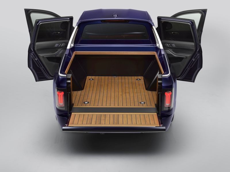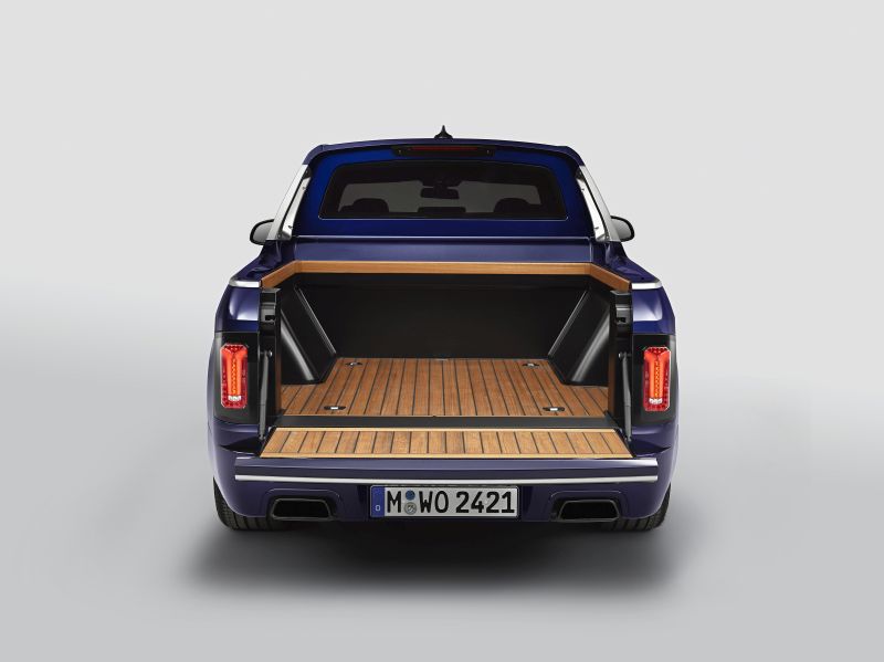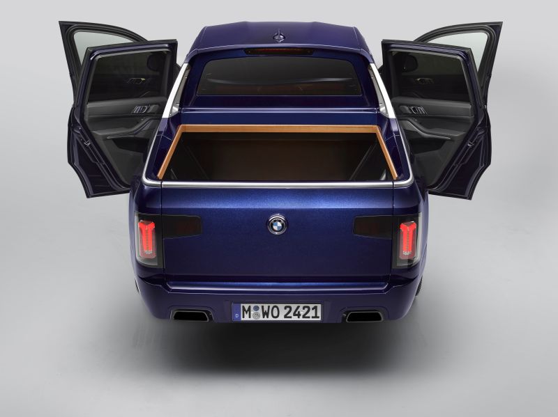 O modelo é equipado com o propulsor de 340 cavalos de potência do BMW X7 xDrive40i e oferece espaço para cinco passageiros, com cabine luxuosa, caçamba revestida artesanalmente em madeira polida, suspensão a ar de dois níveis e inúmeros equipamentos que tornam o modelo ideal para as aventuras. A caminhonete ainda conta com uma motocicleta BMW F 850 GS na caçamba.