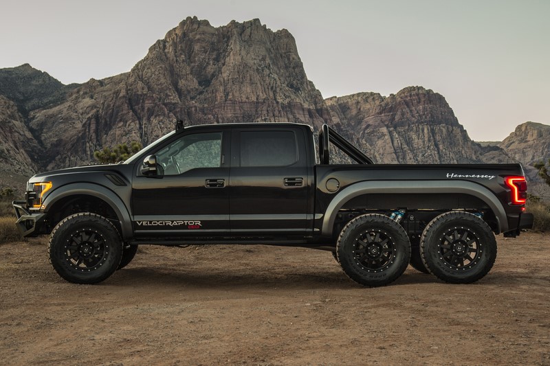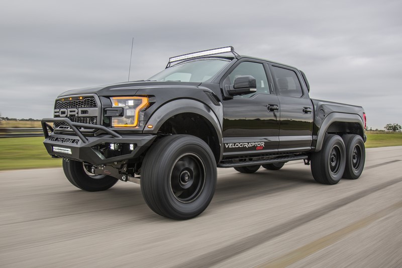- Criado pela montadora Hennessey com base na picape Ford F-150 Raptor, o modelo Velociraptor tem seis rodas e não mede esforços na hora de enfrentar desafios | Foto: Reprodução