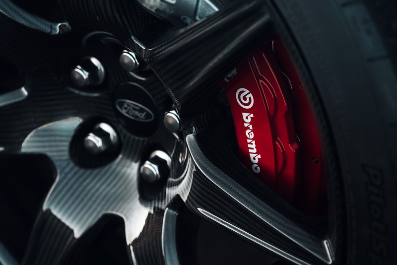 O modelo tem os maiores freios dianteiros da categoria (com discos de 16,5 polegadas) e rodas opcionais de fibra de carbono. Tudo isso, somado às estratégias de controle desenvolvidas nas pistas, permite que o Shelby acelera a 160 km/h e retorne à imobilidade em apenas 10,6 segundos.