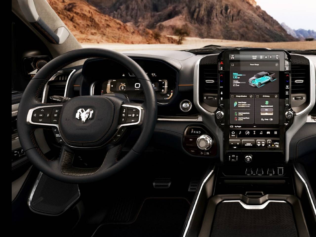 A picape conta ainda com seis airbags, ar-condicionado digital dual zone, carregador por indução refrigerado e ajustes elétricos para os bancos dianteiros (em couro preto na Warlock e marrom na Laramie).