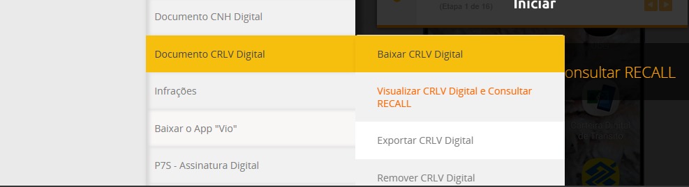 2- No menu lateral, localize a opção “Baixar CRLV Digital”;