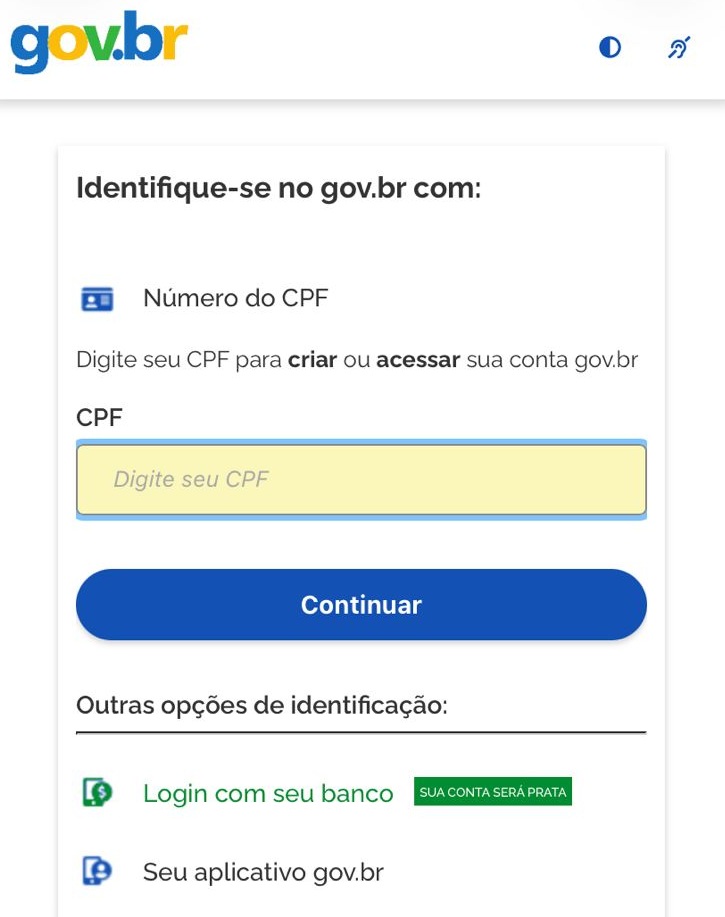 2- Em seguida, acesse com sua conta Gov.br (necessário selo de confiabilidade Prata ou Ouro);