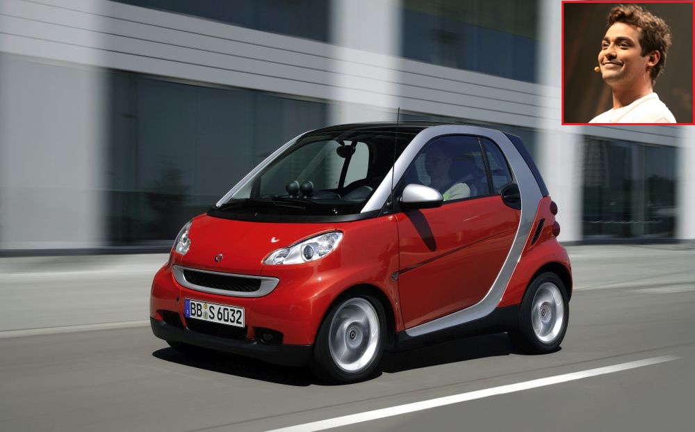 - Eduardo Sterclitch – Smart Fortwo: o humorista foi atingido por uma carreta na Marginal do Tiete, em São Paulo, em 2013; apesar do forte impacto e do carro ter ficado destruído, ninguém se feriu |Foto: Divulgação Smart/ By Eduardosterblitch (Own work) [CC BY-SA 3.0], via Wikimedia Commons