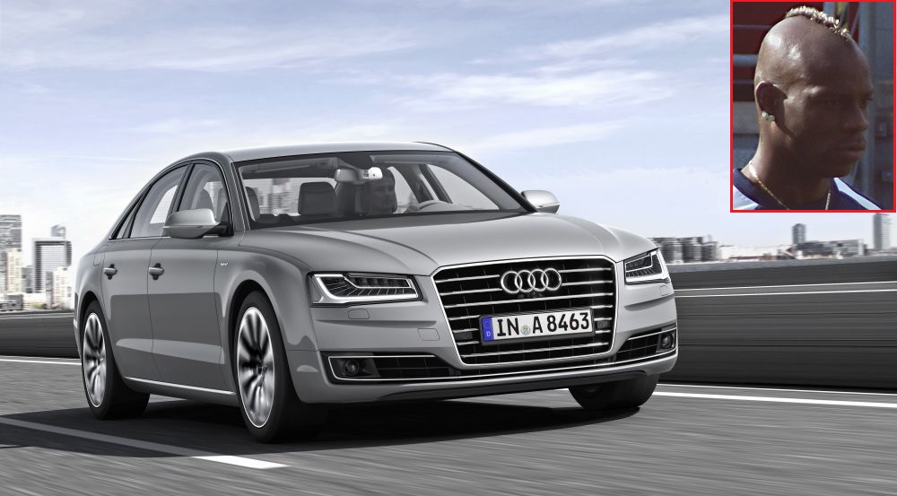 - Mario Balotelli – Audi A8: o polêmico atacante italiano bateu o carro enquanto ainda defendia as cores do Manchester City (ING), em 2010 |Foto: Divulgação Audi/ Por DrabikPany [CC BY-SA 2.0], undefined