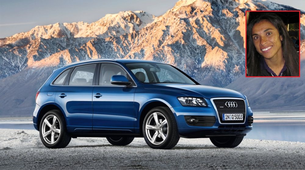 - Marta – Audi Q5: a rainha da seleção brasileira de futebol se acidentou em 2014, enquanto viajava pelo estado de Alagoas; apesar do veículo ter capotado, nenhum dos passageiros se feriu com gravidade |Foto: Divulgação Audi/ By BrokenSphere (Own work) [GFDL or CC BY 3.0], via Wikimedia Commons