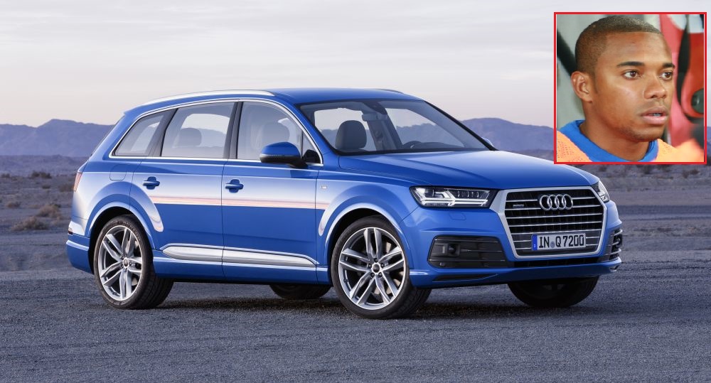 - Robinho – Audi Q7: atualmente jogando no Atlético Mineiro, o rei das pedaladas bateu seu Q7 nos tempos em que jogava no Milan (ITA), em 2012 |Foto: Divulgação Audi/ By Reto Stauffer, www.hopp-schwiiz.ch (Own work) [CC BY-SA 2.0 de], via Wikimedia Commons