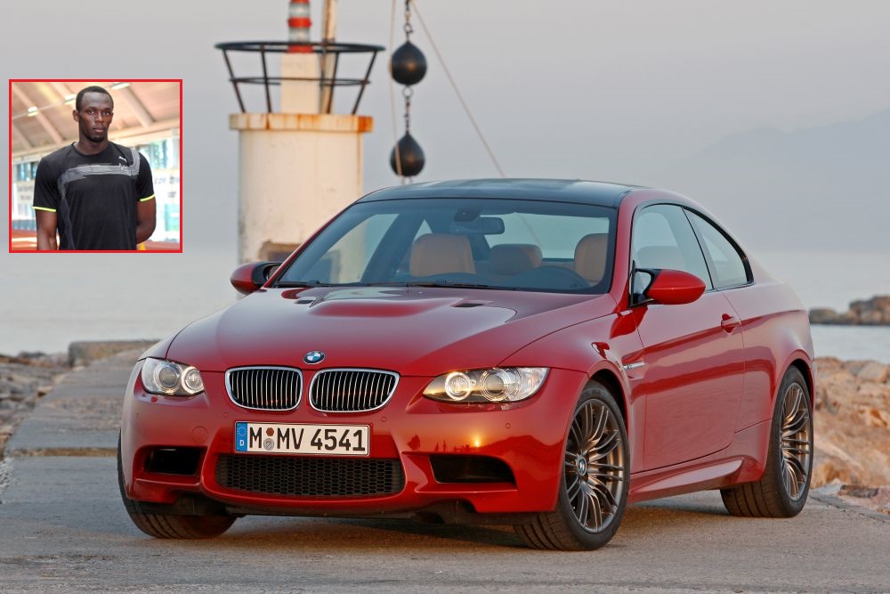 - Usain Bolt – BMW M3: o jamaicano tem uma relação de amor e ódio com o esportivo da Bavária; Bolt já se envolveu em dois acidentes com um exemplar do modelo; em 2009 e em 2012 |Foto: Divulgação BMW/ By Brunel University from London, UK (Usain Bolt at Brunel University) [CC BY 2.0], via Wikimedia Commons