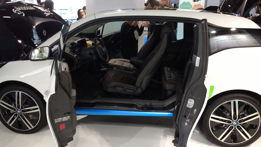 - O pequeno BMW i3 também marcou presença no salão |Foto: Leo Alves/Garagem 360