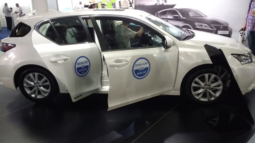 - Geração antiga do Prius também marcou presença no estande da Toyota |Foto: Leo Alves/Garagem 360