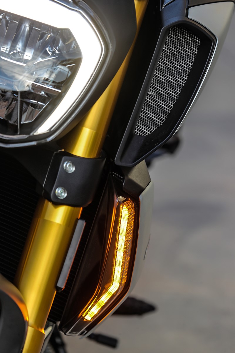 Para auxiliar a condução, diversos recursos eletrônicos fazem parte do conjunto, como os freios ABS, controle de tração, controle de velocidade de cruzeiro, e os sistemas de controle de largada e Ducati Wheelie Control Evo.