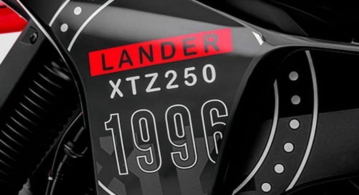 Quando configurada nas cores vermelho ou bege, o modelo também conta com o acréscimo do grafismo “Lander XTZ 250 1996”, como na foto acima.