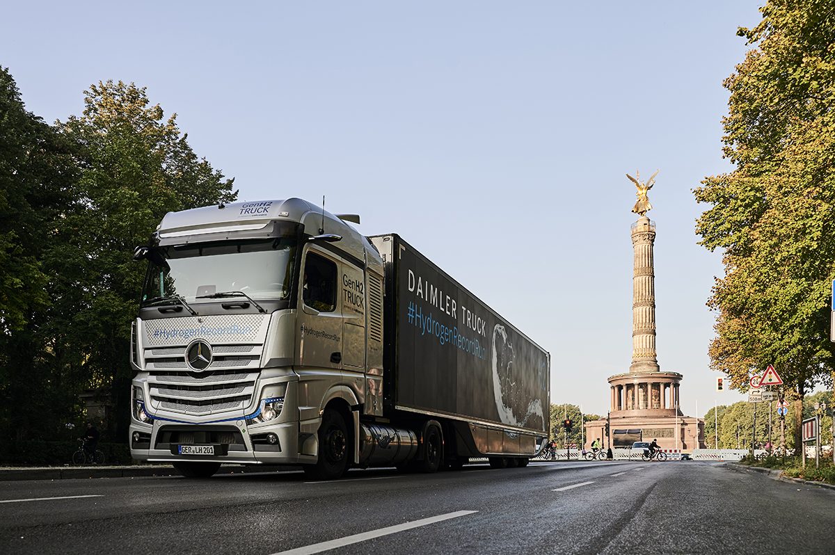Protótipo a do caminhão Mercedes-Benz GenH2 percorreu, no final de setembro, mais de 1.000 km de distância com um único abastecimento.