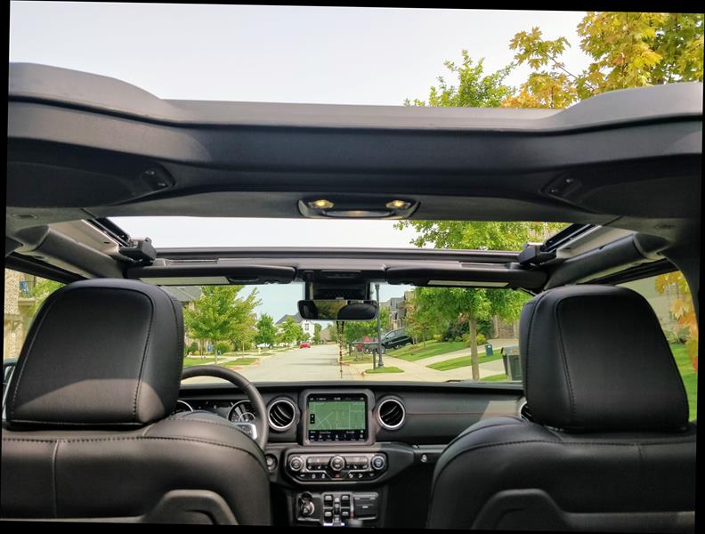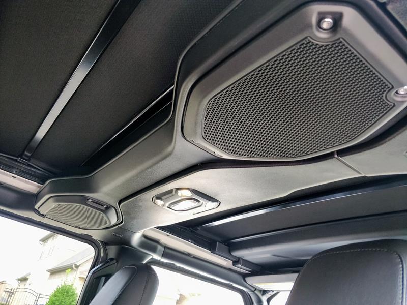 Dentro do Wrangler, vale a pena olhar não apenas para frente e para os lados, mas também para cima. E não necessariamente para os poderosos alto-falantes presos no Santo Antônio. Ocorre que, na versão americana, há diferentes tipos de capota: com lona simples, rígida removível (em três peças) e com teto de lona que abre e fecha eletricamente com um toque (não oferecida no Brasil).