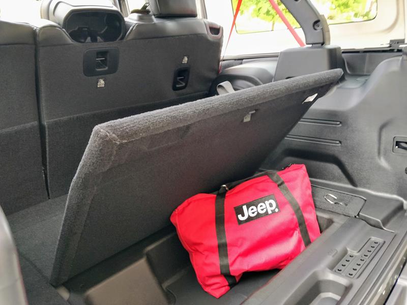 Ao fuçar no Rubicon nota-se, também, que o porta-malas tem bom espaço (a capacidade é de 498 litros), sobretudo porque o estepe fica do lado de fora e há um compartimento inferior para guardar objetos. É nele, inclusive, que estava outro opcional do carro, uma sacola vermelha personalizada. Em seu interior havia cordas, gancho e outros acessórios úteis em trilhas – a capacidade de reboque do carro é de 1,5 tonelada.