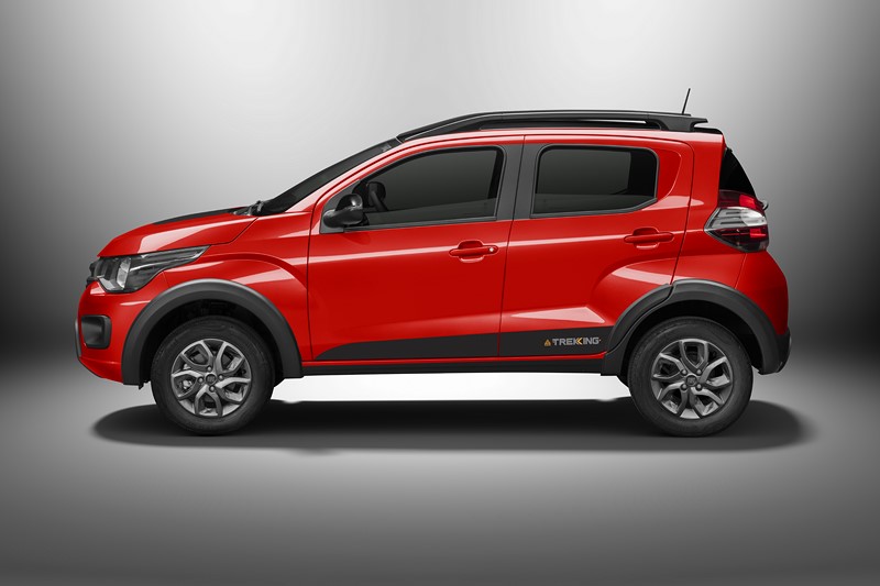 A maior altura do Mobi Trekking fez o modelo ter um ângulo de entrada de 24º maior até que o de alguns SUVs, como Chevrolet Tracker (17º), Nissan Kicks (20º) e Hyundai Creta (21º). Além do vão livre maior, a versão conta com adereços visuais para compor a proposta aventureira.