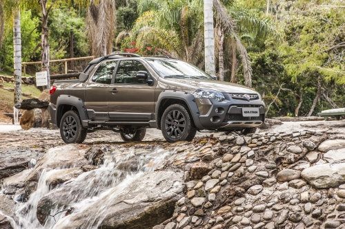 Já as versões Adventure 1.8 16V Flex Cabines Estendida e Dupla, além dos equipamentos de série da Hard Working, oferecem rodas 16 polegadas, sensor de estacionamento, retrovisores externos elétricos e rádio Connect CD MP3/WMA integrado ao painel com RDS, viva voz Bluetooth e entrada USB. O modelo de Cabine Dupla também traz porta-objetos e porta-copo na lateral traseira, apoios de cabeça traseiros rebaixados com regulagem de altura, câmbio Dualogic Plus e volante com alavanca de seleção de marchas tipo borboleta.