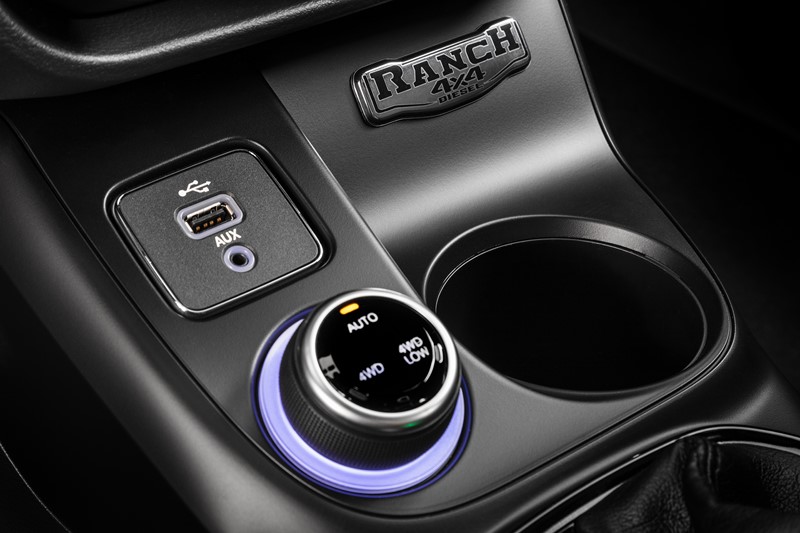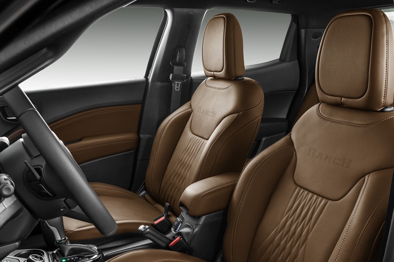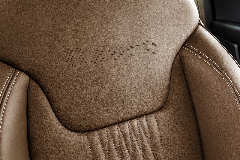 O interior do veículo tem como destaques o exclusivo revestimento dos bancos em couro marrom, com o logotipo “Ranch” gravado nos encostos dianteiros. A marca visual da versão também está presente nos tapetes de carpete, no console central e nas portas dianteiras.