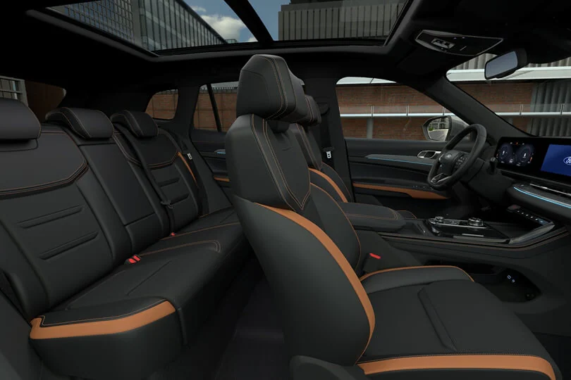 - O acabamento interno é um dos principais atrativos. O uso de materiais emborrachados, couro sintético e detalhes em laranja cria um ambiente sofisticado e bem resolvido para a categoria.