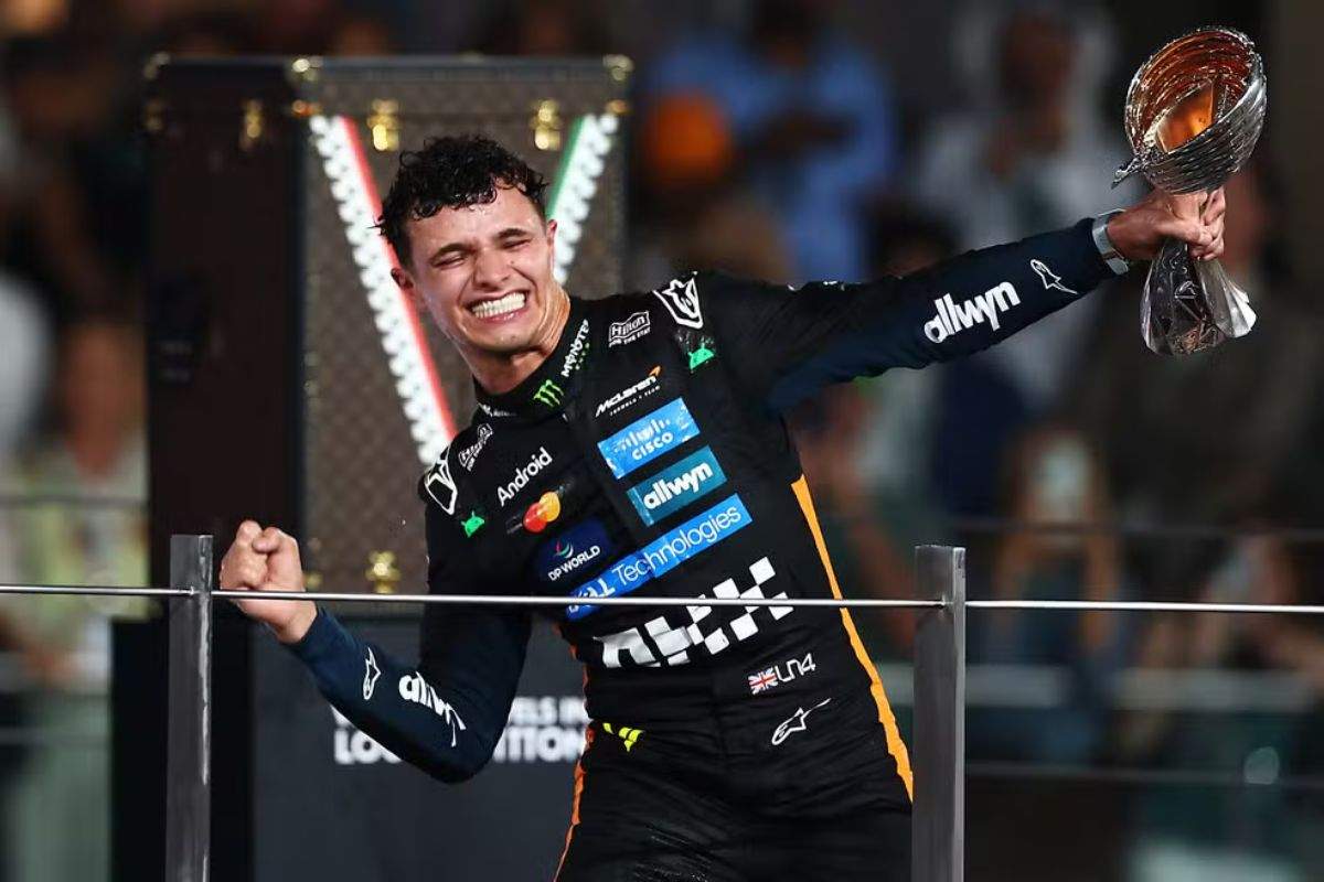 Lando Norris comemora a F1 2025 — Foto Zak MaugerLAT Images — Foto Marcos Ribollige