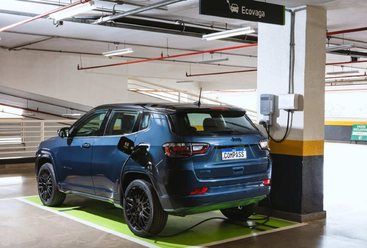 Jeep Compass 4xE, modelo híbrido plug-in produzido no Brasil, teve preço reduzido em função da concorrência (Foto: Divulgação/Stellantis)