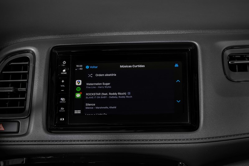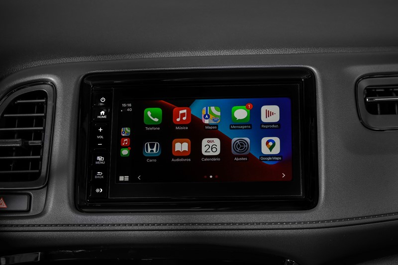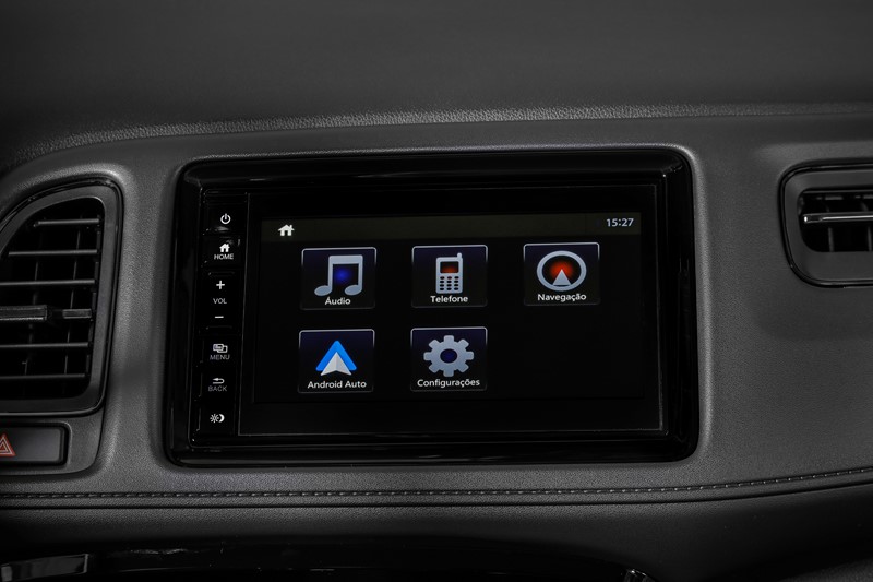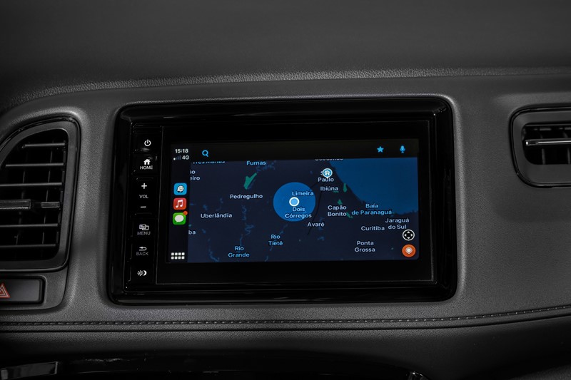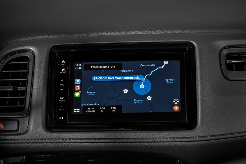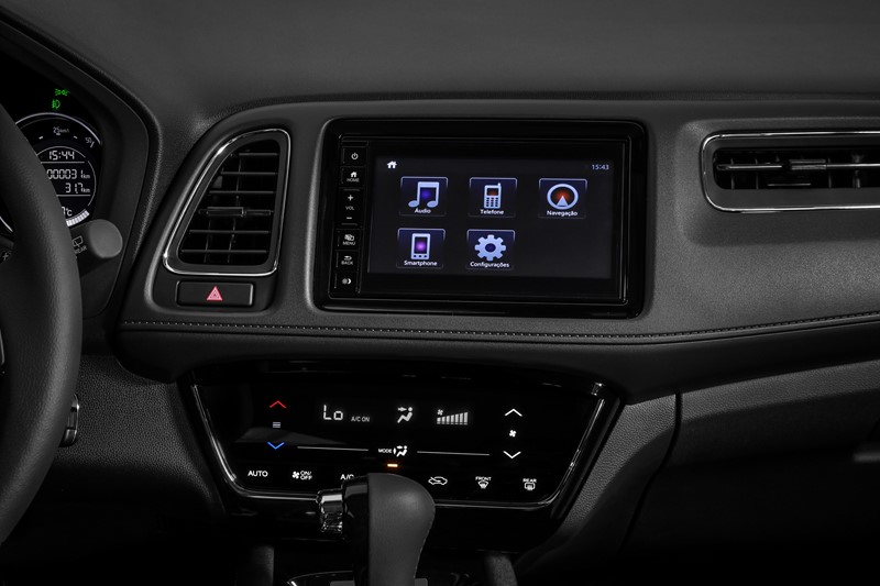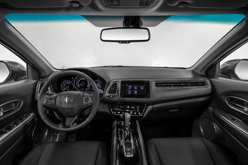 Nas versões EXL e Touring, o HR-V oferece todos os itens acima e bancos revestidos em couro, central multimídia de 7″ com navegador integrado, retrovisor interno fotocrômico e sensores de estacionamento dianteiros e traseiros, além da grade frontal com acabamento em black piano.