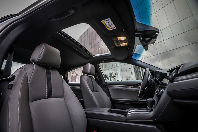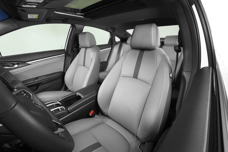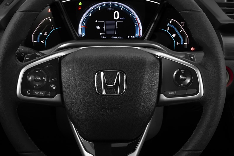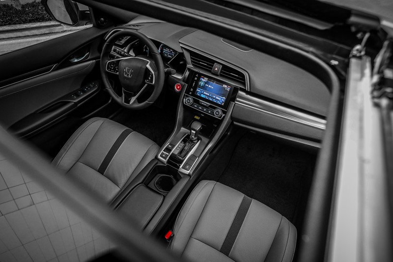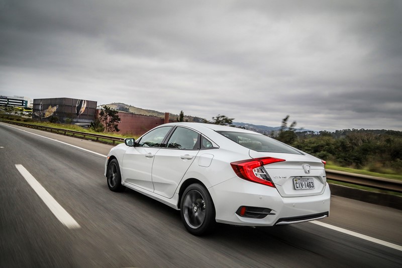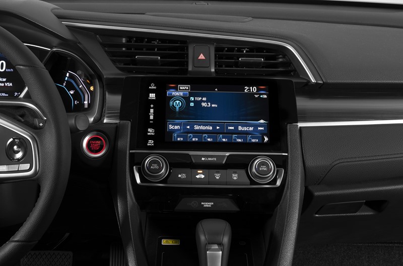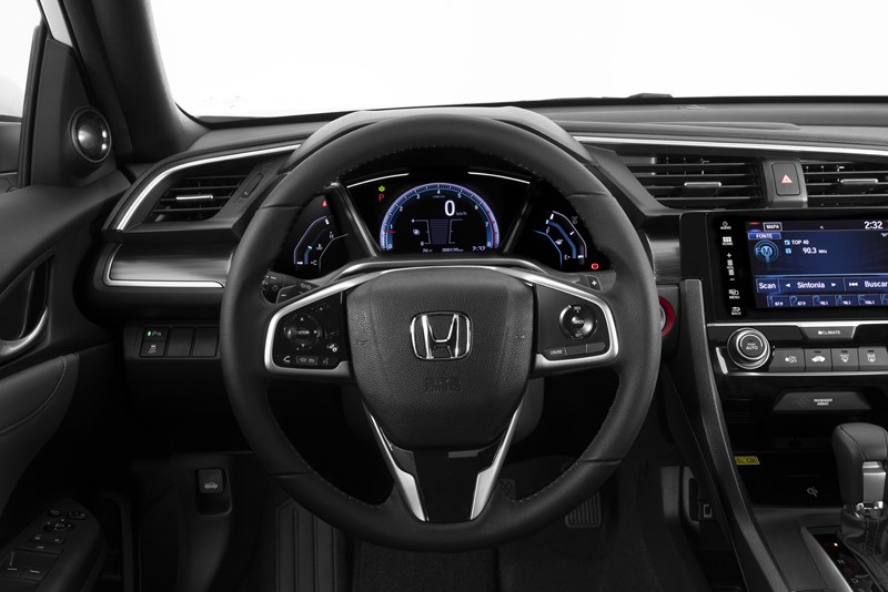 Todos as versões do Civic contam com ar-condicionado digital, freio de estacionamento eletrônico com função Brake-Hold, controle de cruzeiro e vidros elétricos com função um toque para subida e descida em todas as portas, câmera de ré, rodas de liga leve de 17 polegadas, sistema de monitoramento de pressão dos pneus e transmissão CVT.