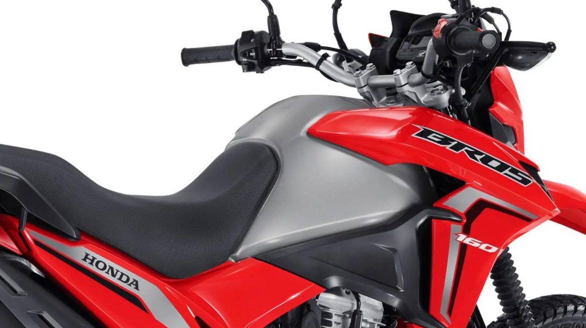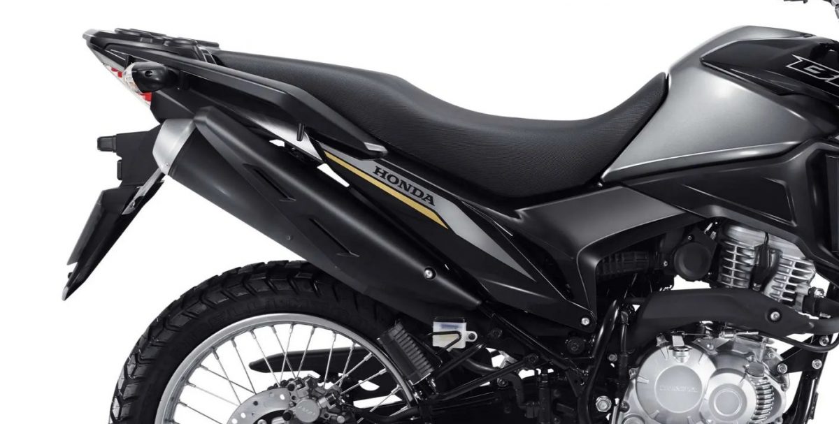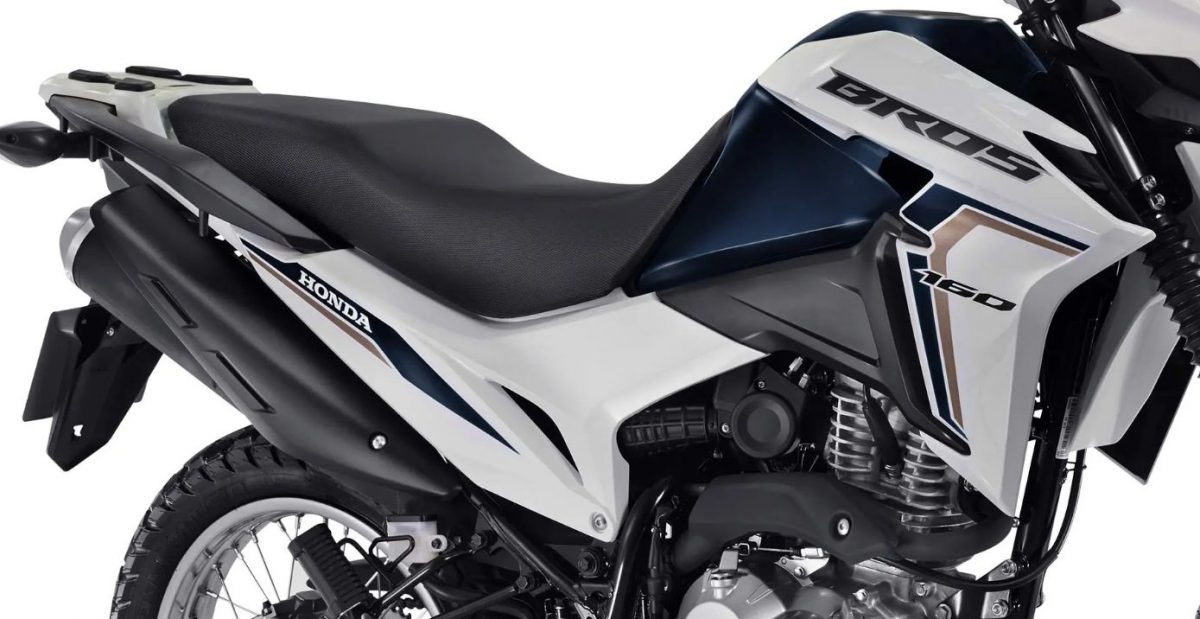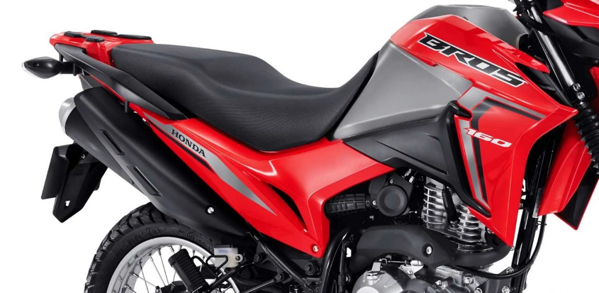 Enquanto isso, outra novidade é a garupa. Ela aparece revestida em alumínio, a alça integrada ao bagageiro. Dessa forma, o visual da Bros 2022 fica ainda mais estiloso!