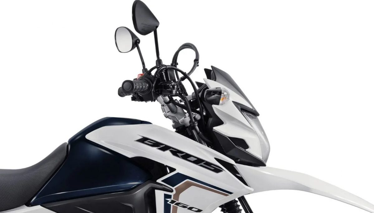 Além disso, o para-lama aparece mais alto e integrado à carenagem. Assim, destacando ainda mais o perfil aventureiro da nova Bros.