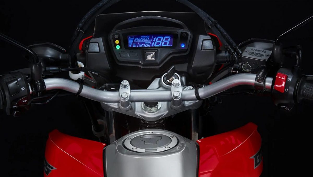 A Bros 160 conta com painel blackout digital: moderno e prático, facilita a leitura das informações pelo piloto. Vem com velocímetro, hodômetro total e parcial, marcador do nível de combustível, relógio e luzes-espia.