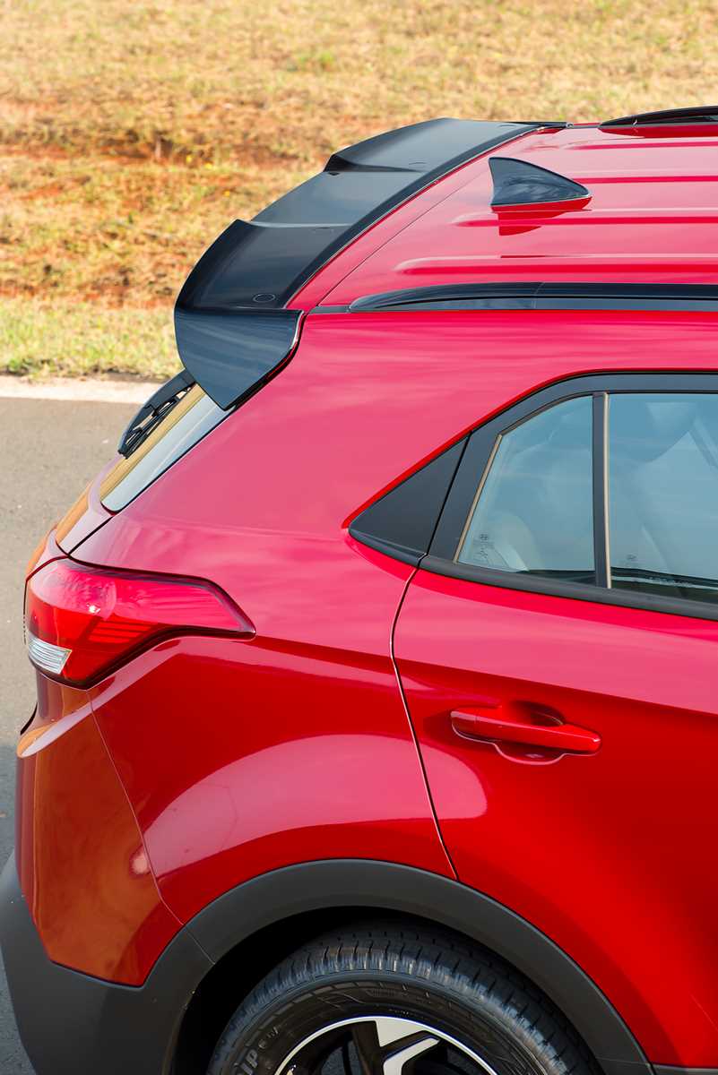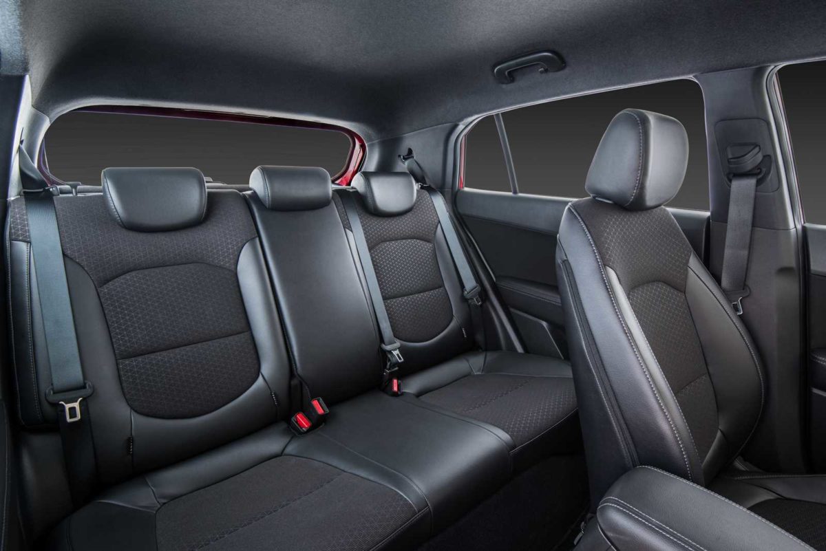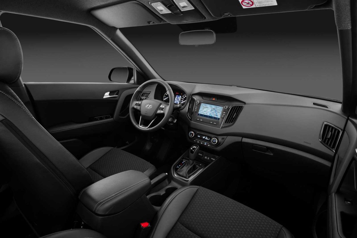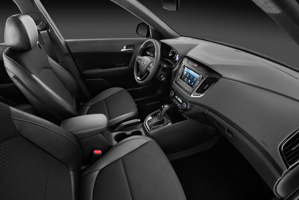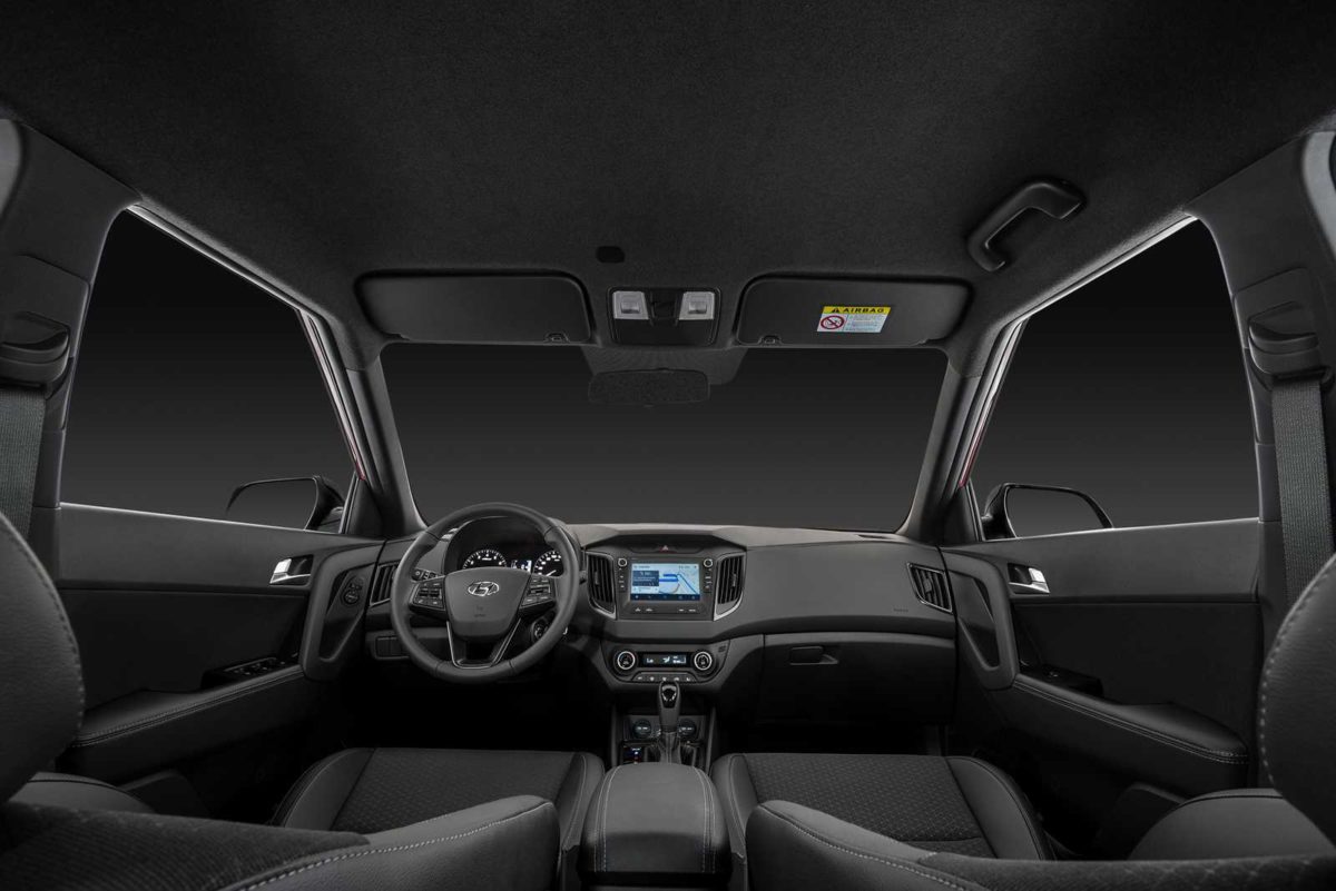 O visual tem ainda o spoiler de teto, também em preto brilhante, as lanternas Clear Type, antena de teto do tipo barbatana e o emblema “Sport”, inserido na tampa do porta-malas. O habitáculo do Creta Sport também está personalizado. O pacote Sport Luxury traz bancos de couro e tecido pretos, volante revestido de couro, detalhes em preto fosco metalizado e acabamento interno em todo o teto também na cor preta.