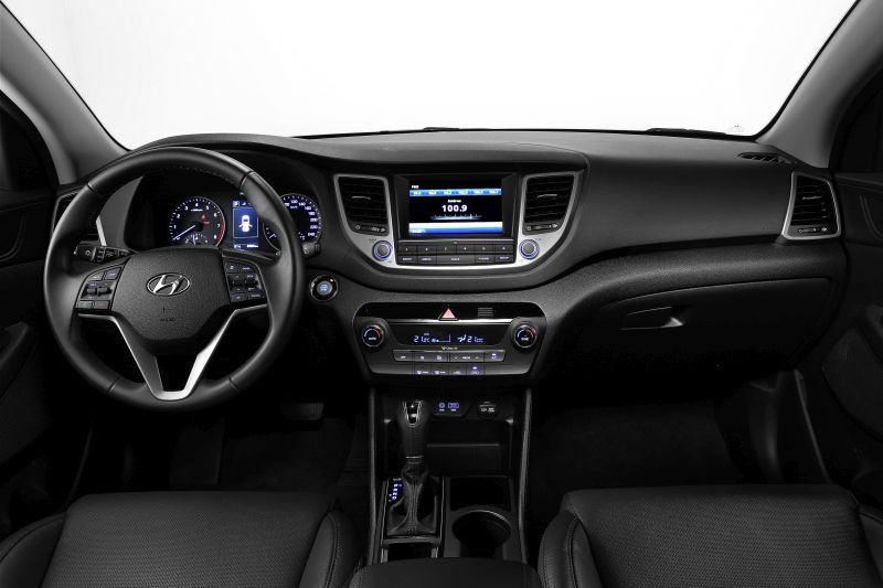 Por dentro, o novo Tucson pode ser equipado com painel de instrumentos com tela em TFT de 4,2 polegadas nas versões mais caras, sendo de 3,5 polegadas na versão GL. Há ainda uma central multimídia de sete polegadas para o SUV. Para oferecer uma melhor ergonomia, o volante tem ajuste de altura e profundidade. Os bancos dianteiros contam com ajustes elétricos, inclusive para o apoio lombar.