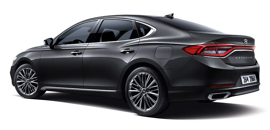 A traseira é a parte da nova geração que mais remete aos modelos anteriores. As lanternas, unidas por uma seção central, seguem no novo Azera, mas com desenho que lembra o Dodge Charger. O forte vinco na lateral que avança até a traseira também está presente.
