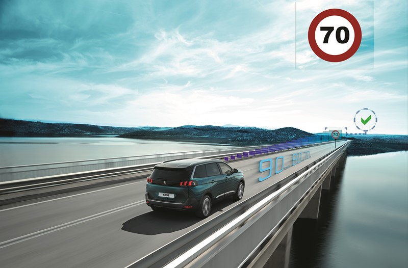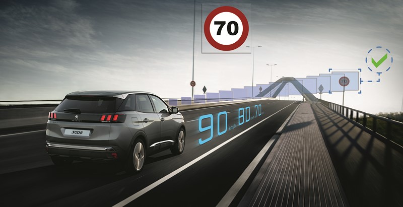O piloto automático funciona em conjunto com um leitor de sinalização de velocidade. Por meio uma câmera de vídeo, o SUV Peugeot 3008 Griffe Pack lê as placas das vias e indica a velocidade máxima ao condutor – vale ressaltar que a função é capaz de diferenciar avisos de veículos leves e pesados. Quando o carro está no piloto automático, o motorista recebe um aviso sugerindo adaptar a velocidade do veículo ao limite permitido no local.