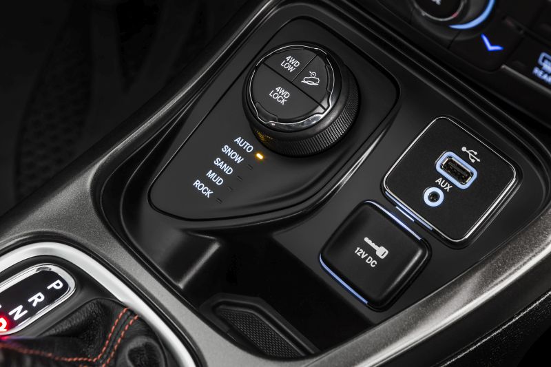 Por meio do seletor do painel, é possível escolher entre os modos Snow (neve), Sand (areia), Mud (lama), Rock (pedra), este exclusivo da versão Trailhawk, e Auto, no qual o próprio sistema seleciona automaticamente a melhor opção.