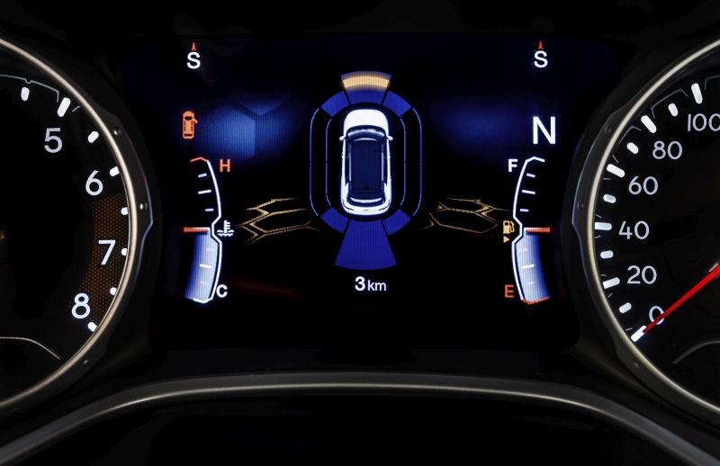 No entanto, o maior destaque no quesito segurança do Compass é o seu inédito conjunto de recursos. Ele é formado por controle adaptativo de velocidade, que permite manter uma distância segura do carro da frente, aumentado e diminuindo a velocidade de forma autônoma; aviso de colisão frontal, tecnologia que usa câmeras e um radar para acionar o freio automaticamente em casos de possíveis impactos; e monitoramento de mudança de faixa (LDW), que avisa o motorista através de uma vibração no volante quando ele está mudando de faixa.