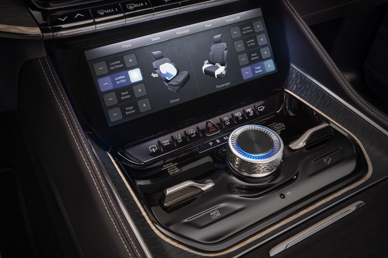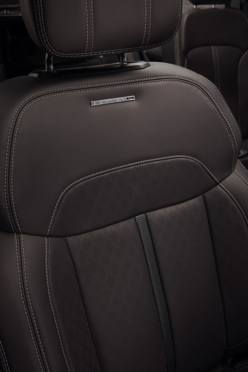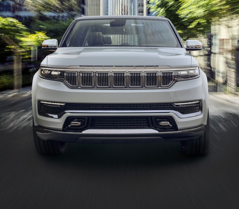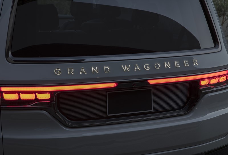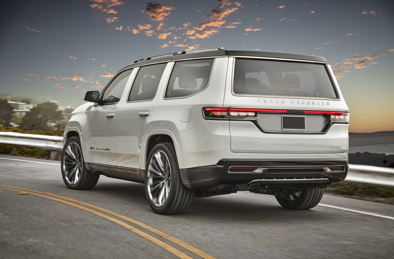 O estilo retilíneo e o desenho das lanternas do conceito deram ao Grand Wagoneer um quê de Land Rover, ao menos nas fotos. E talvez a marca britânica tenha sido a referência na hora dos projetistas da Jeep criarem o modelo. Ele foi definido pela marca como um SUV de luxo, com direito a sete telas de alta definição espalhadas pelo interior do carro, acabamentos em madeira e uso de couro em abundância. A Jeep não economizou na quantidade de luzes no exterior, já que cada parte das sete fendas da grade são iluminadas por LEDs, sem contar a iluminação que pega a grade de um lado ao outro. Até mesmo o nome do carro é iluminado na dianteira e na traseira.