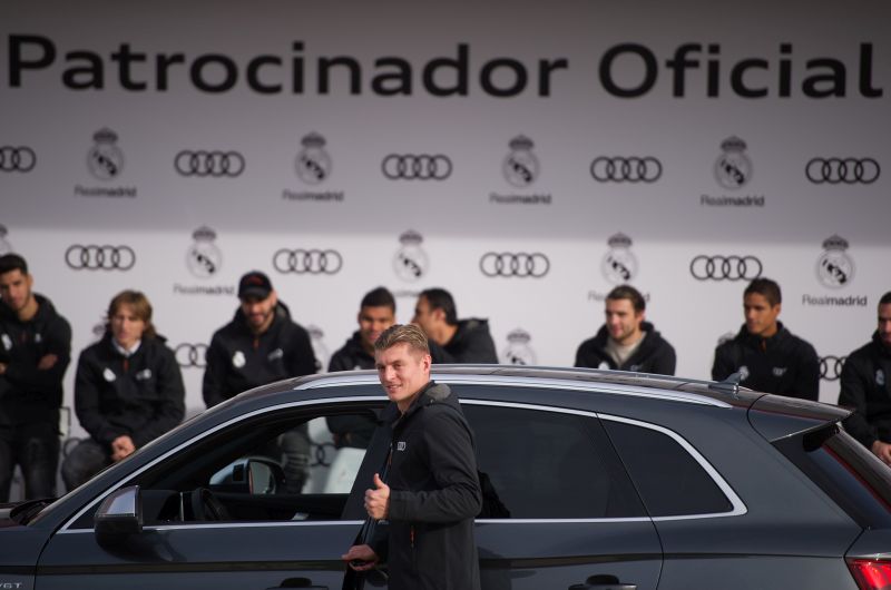 A Audi, patrocinadora oficial do Real Madrid, decidiu presentar os craques do time espanhol com alguns de seus modelos. O português Cristiano Ronaldo e o goleiro Keylor Navas, por exemplo, escolheram o RS 7 Sportback. Jogadores como Gareth Bale, Luka Modric e Casemiro optaram pelo Q7. O brasileiro Marcelo e o técnico Zinédine Zidane ficaram com o potente RS 6 Avant performance. Já o capitão Sergio Ramos vai dirigir um novo R8 Spyder.