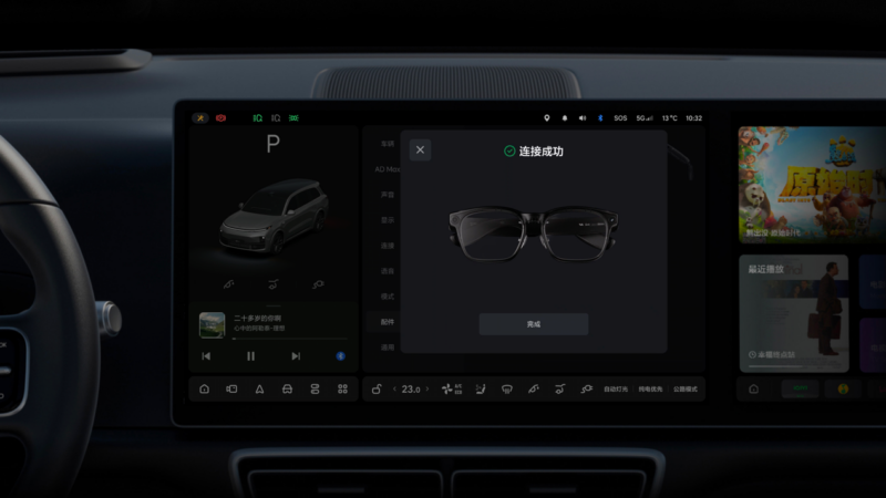 A grande inovação do Livis é a sua integração perfeita com os veículos da Li Auto. Usando Bluetooth e redes 5G, os óculos se conectam ao sistema de infoentretenimento do carro, permitindo o controle remoto por voz em um raio de até 100 metros. Os motoristas podem comandar portas deslizantes elétricas, pré-ativar o ar-condicionado e o aquecimento dos bancos, e até mesmo verificar a autonomia e o status de carregamento do veículo.