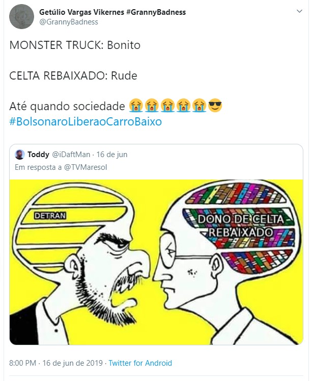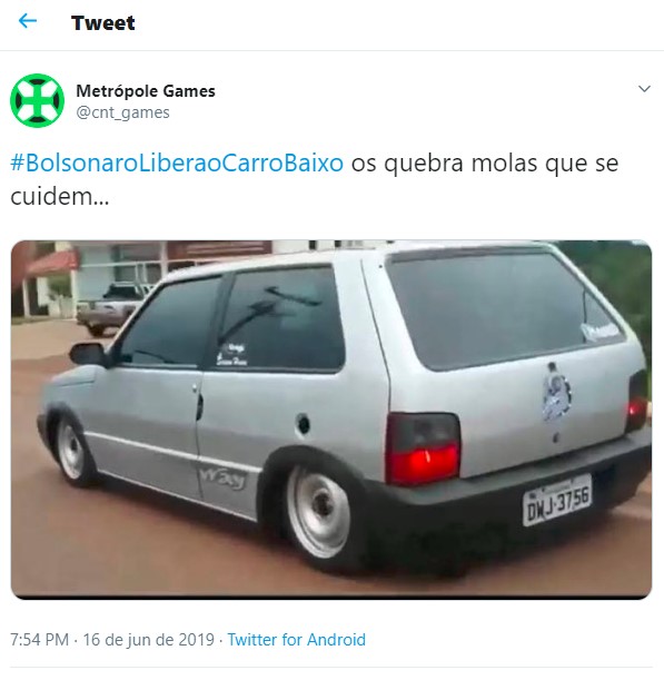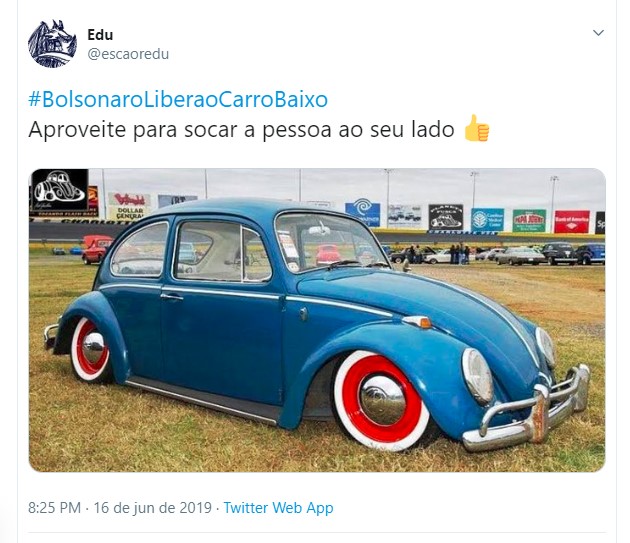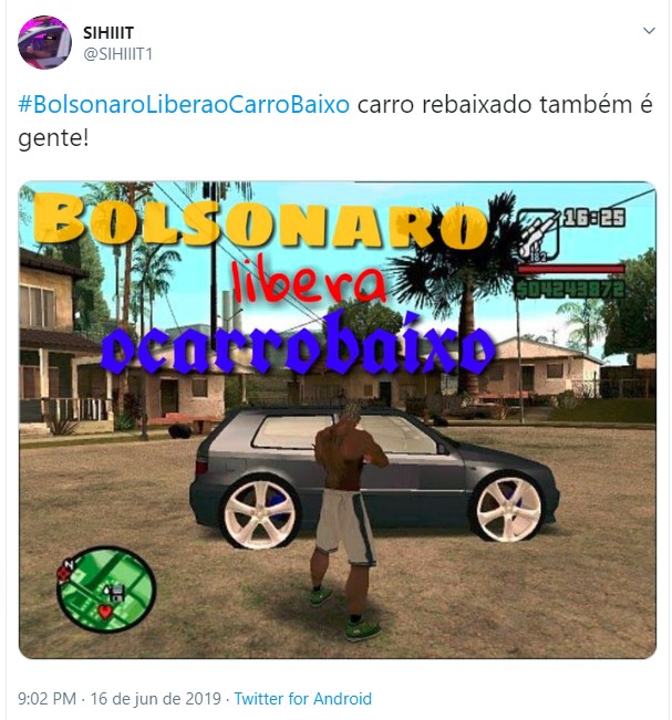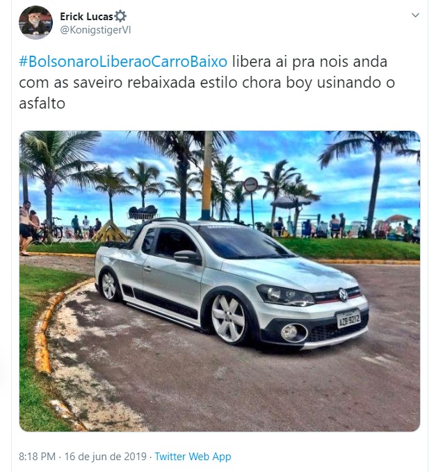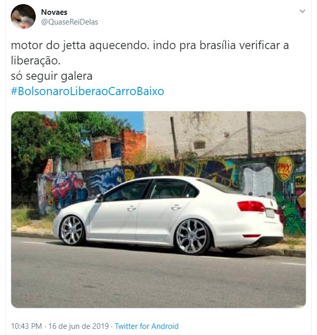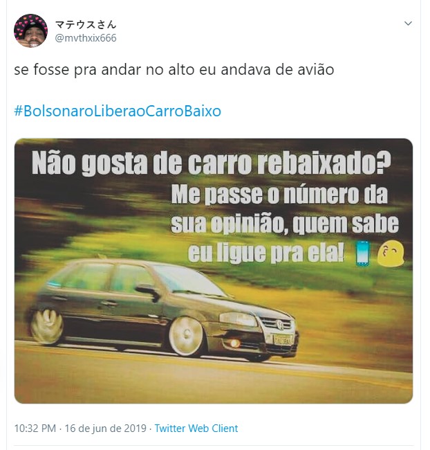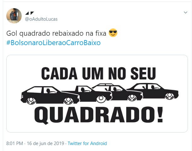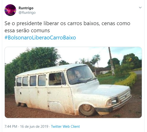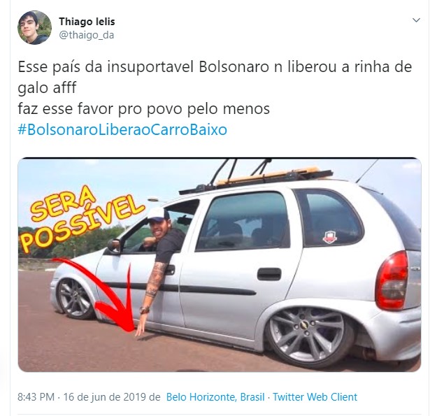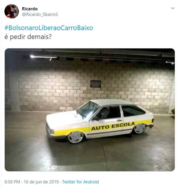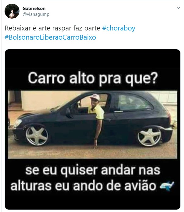 Uma hashtag pedindo a liberação dos carros rebaixados fez sucesso no Twitter nos últimos dias. Diversos usuários fizeram piada sobre o assunto, pedindo para o presidente da república Jair Bolsonaro liberar essa modificação nos automóveis. Entretanto, vale lembrar que a lei brasileira permite o rebaixamento, contando que sejam cumpridas algumas exigências.