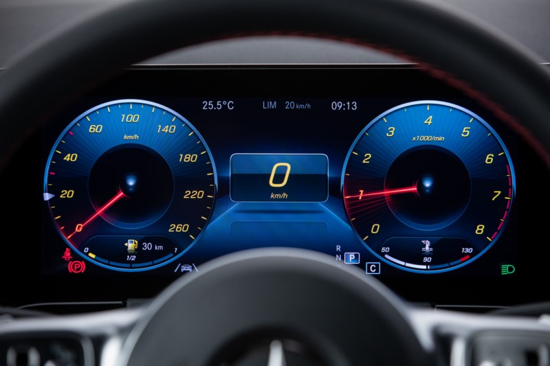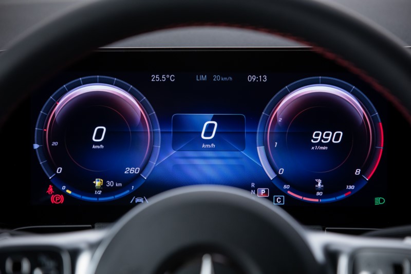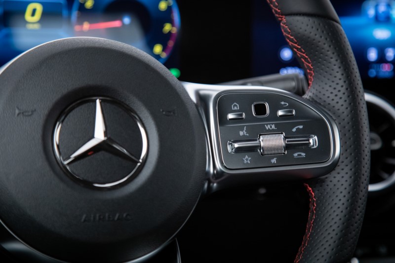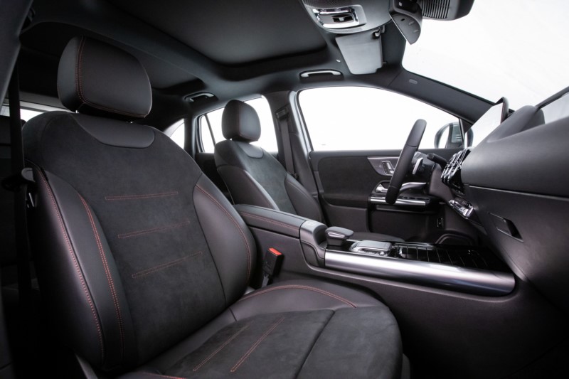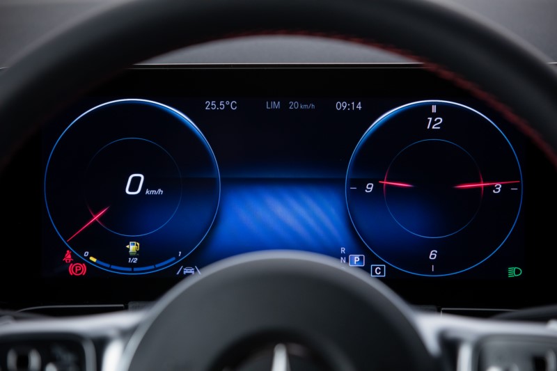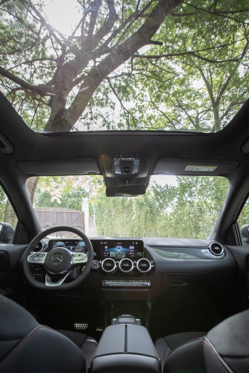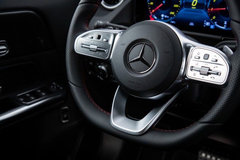 O GLA 200 AMG Line conta com as duas telas de 10,25 polegadas no painel, sendo uma para o painel de instrumentos personalizável e outra para o console central. Elas são integradas ao sistema MBUX, que permite realizar comandos por voz.