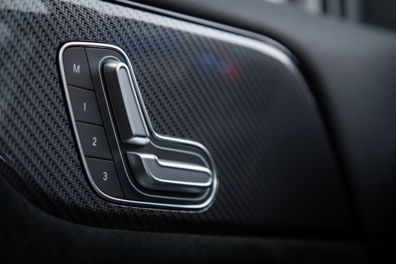 Para inaugurar a geração, o modelo escolhido foi com o pacote visual da linha esportiva AMG. Ele adiciona a grade frontal diamante com pins cromados, para-choques exclusivos, rodas de 20 polegadas e acabamentos cromados. Por dentro, a volante multifuncional com base achatada, pedais cromados, molduras internas que simulam fibra de carbono e bancos com acabamento em uma espécie de Alcântara.