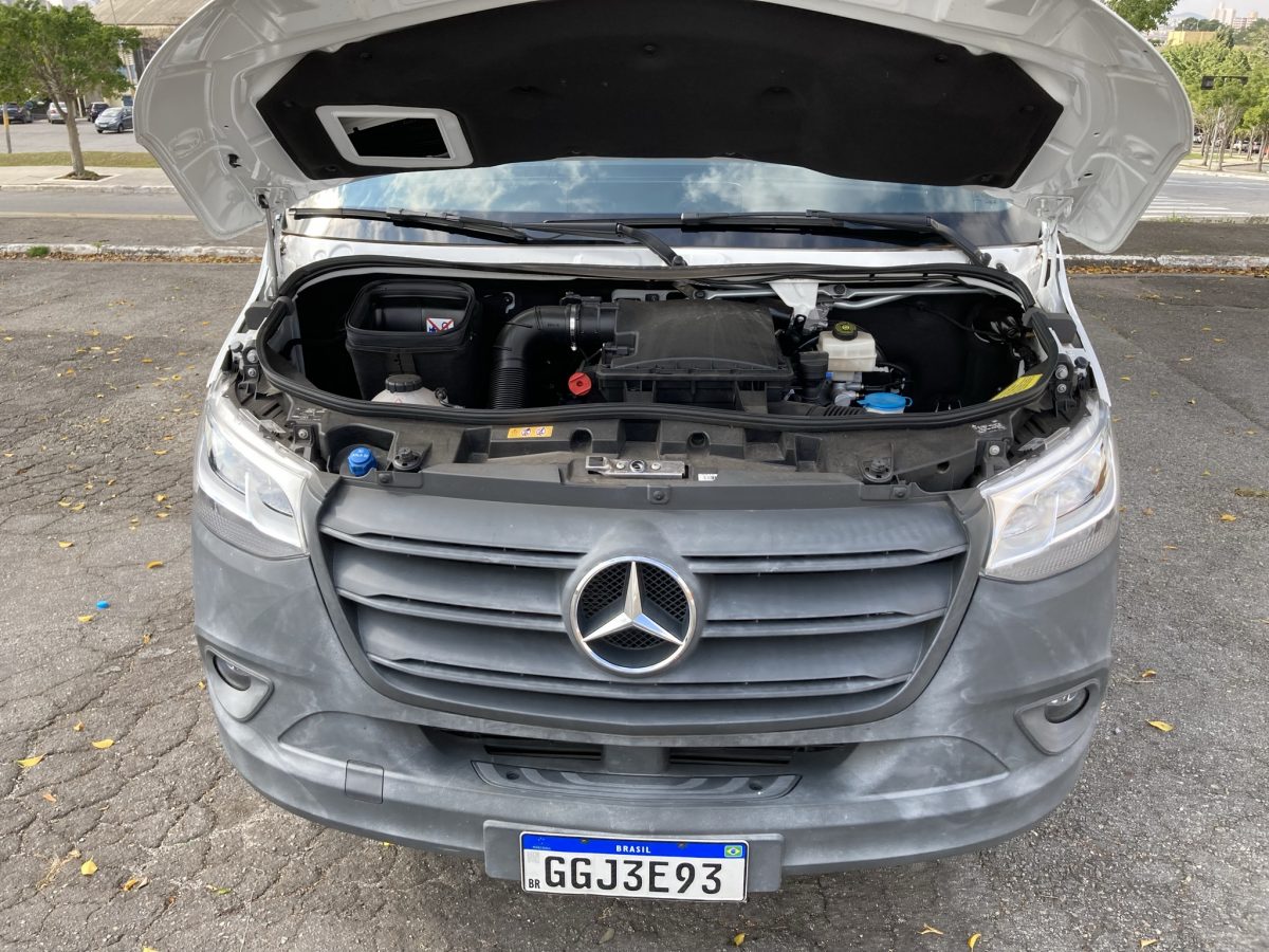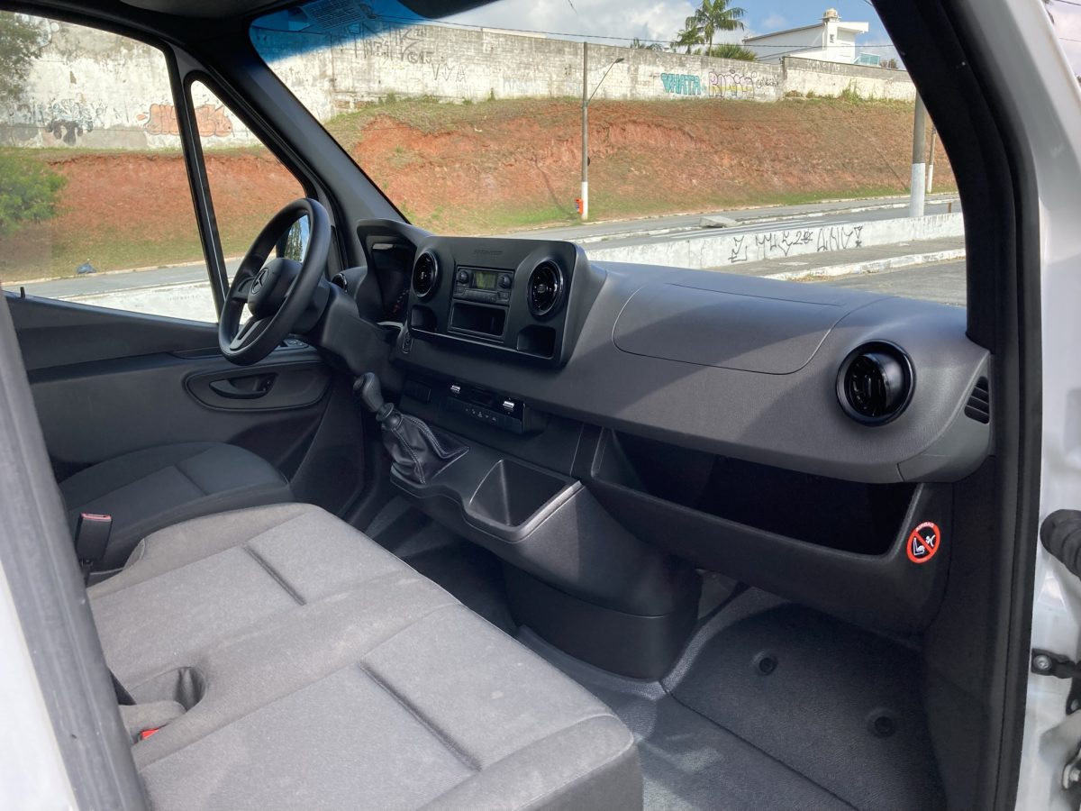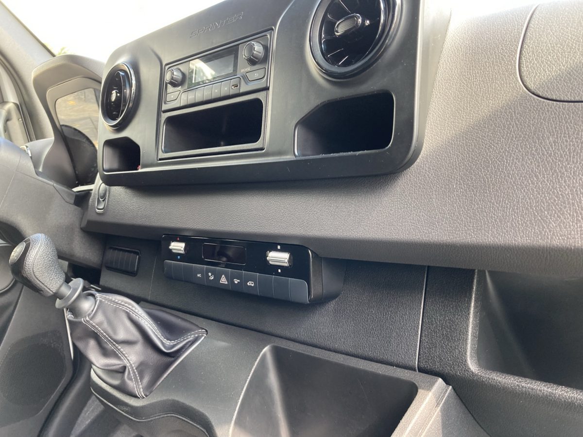 A partida é por botão e o Sprinter conta com chave presencial nesta versão. Um luxo para um modelo comercial, afinal. E o botão de partida, a chave, as saídas de ar, o volante, os comandos de seta e do farol, além dos reguladores dos vidros e retrovisores, são todos semelhantes ao do Classe A.